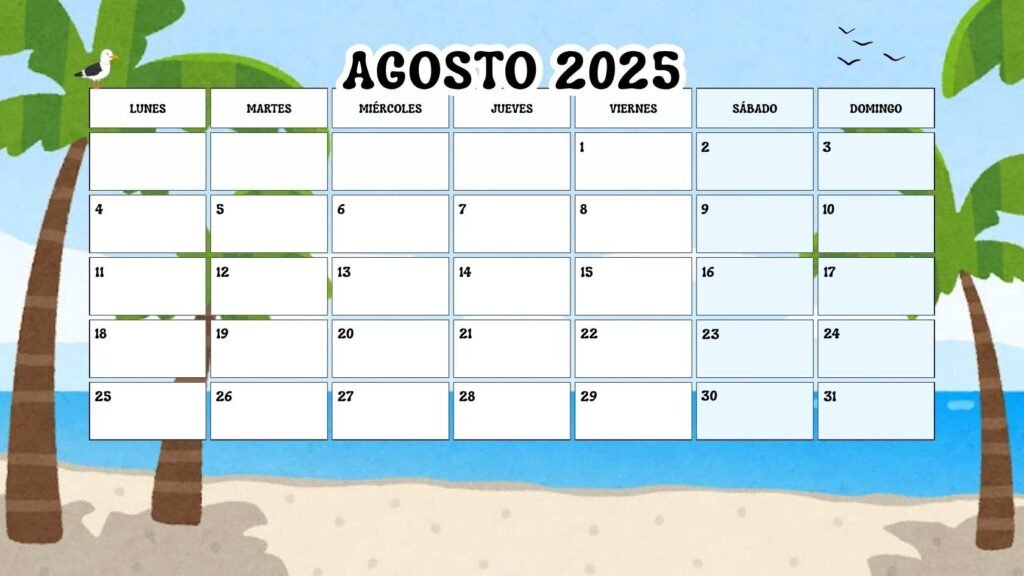 ¿Listo para un agosto 2025 organizado y productivo? ¡Descarga tu calendario ahora y comienza a planificar tu éxito.