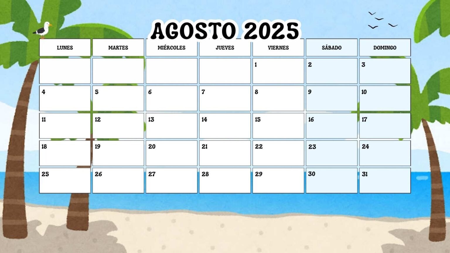 Ofrecemos el calendario de agosto 2025 en tres formatos prácticos: